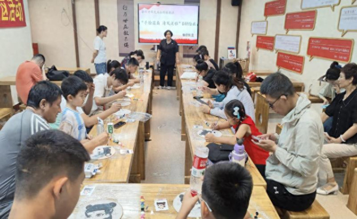近两小时的创作后,原本素净的团扇绽放出多样光彩:有的哪吒红缨如火、威风凛凛,有的敖丙白衣胜雪、仙气飘飘;亲子家庭的作品中,不乏添了彩虹、云朵的创意设计,老年居民的作品则透着沉稳雅致的韵味。活动尾声,大家手持专属团扇互相展示,用手机记录下这份满载心意的夏日成果。